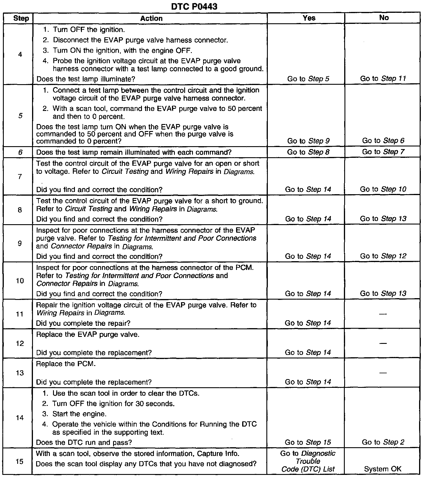 6. This step tests if a ground is constantly being applied to the EVAP purge valve.
