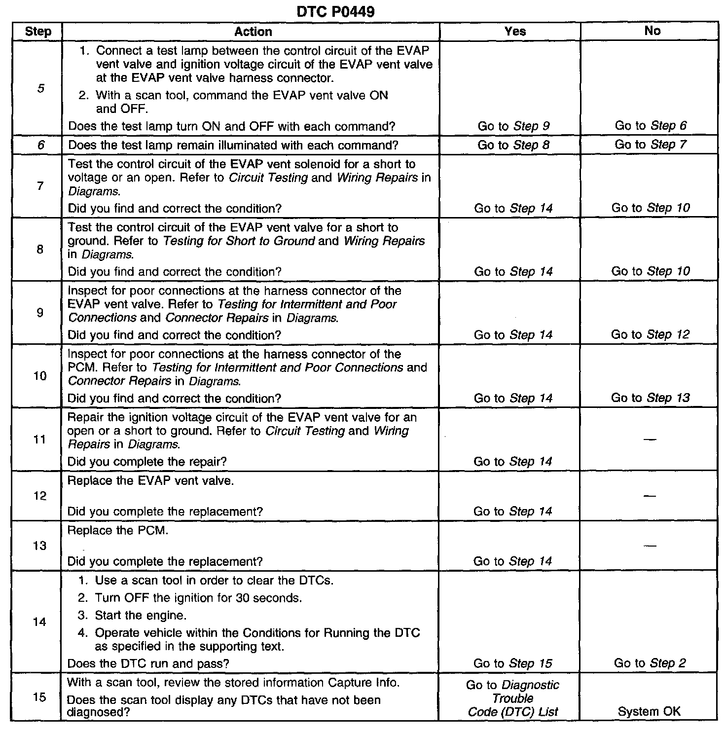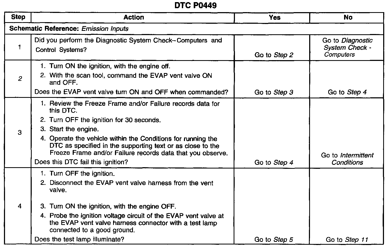 CIRCUIT DESCRIPTIONAn ignition voltage is supplied directly to the EVAP canister vent valve. The PCM controls the EVAP vent valve by grounding the control circuit via an internal switch called a driver. The primary function of the driver is to supply the ground for the controlled component. The PCM monitors the status of the driver. If the PCM detects an incorrect voltage for the commanded state of the driver, DTC P0449 sets.
