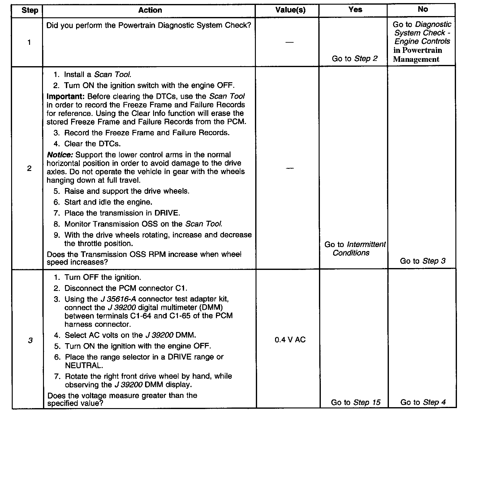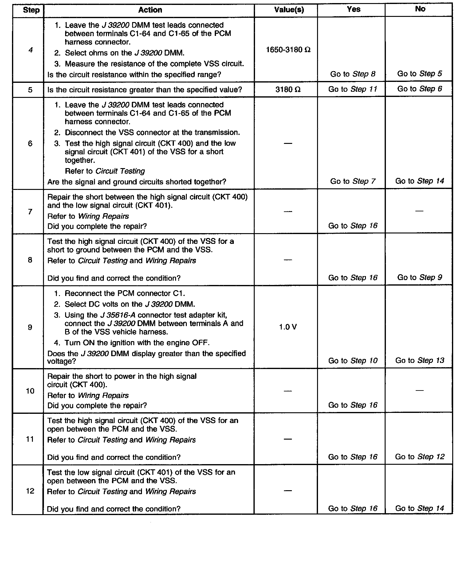 3. This step tests the ability of the VSS to produce an AC voltage. This step also verifies the integrity of the wiring to the PCM.