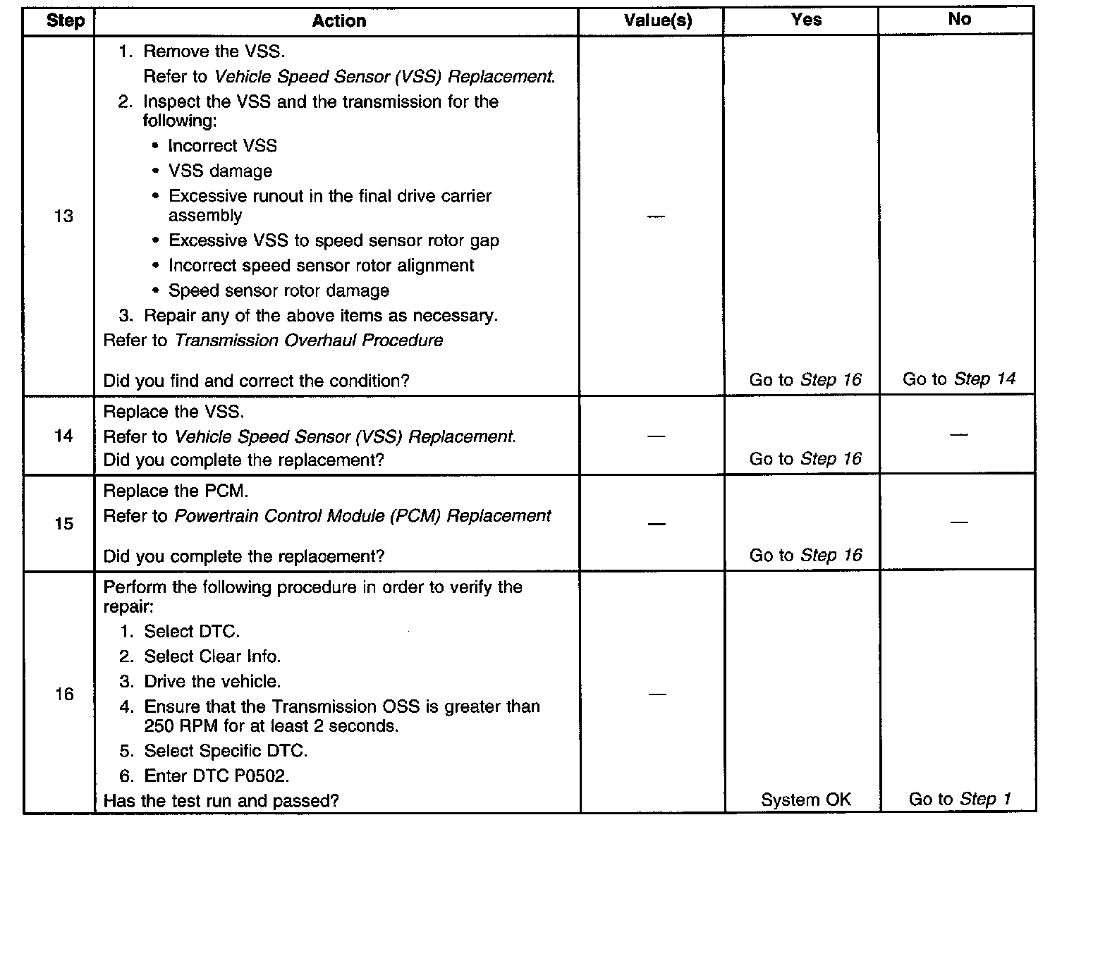 If the PCM detects a low vehicle speed with a high engine speed while in a drive range, then DTC P0502 sets. DTC P0502 is a type B DTC.