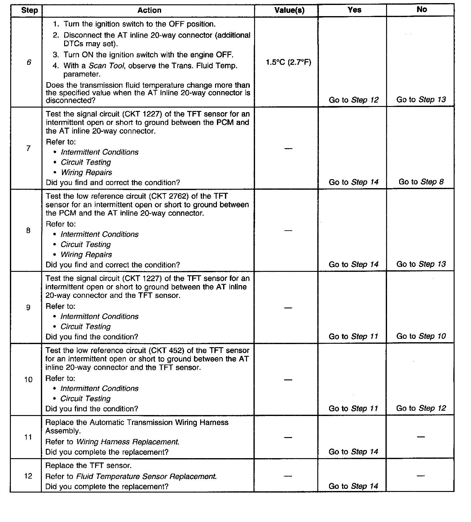 6. This step determines if a condition exists with the PCM or TFT sensor.