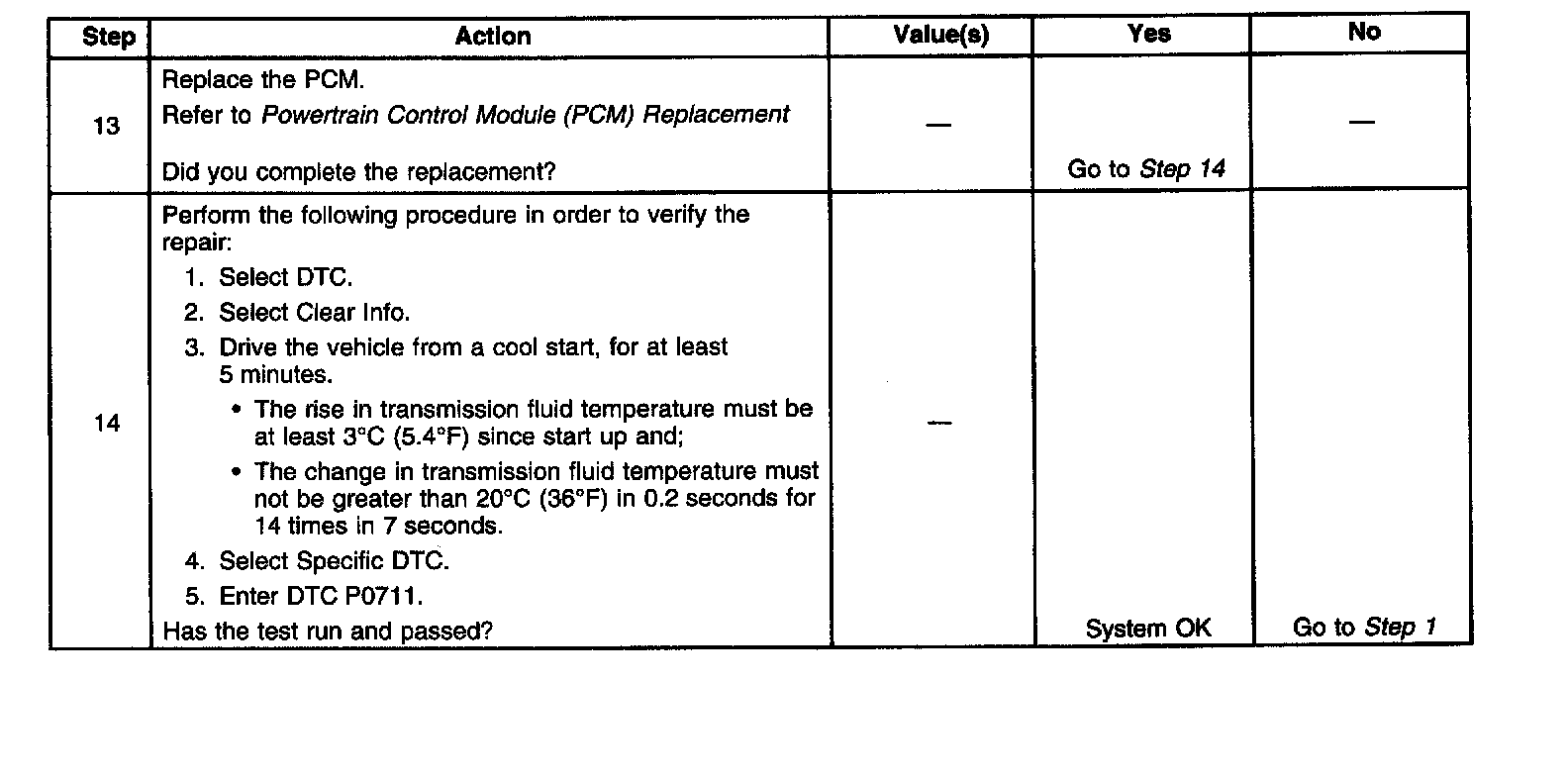 ^ The PCM stores DTC P0711 in PCM history.