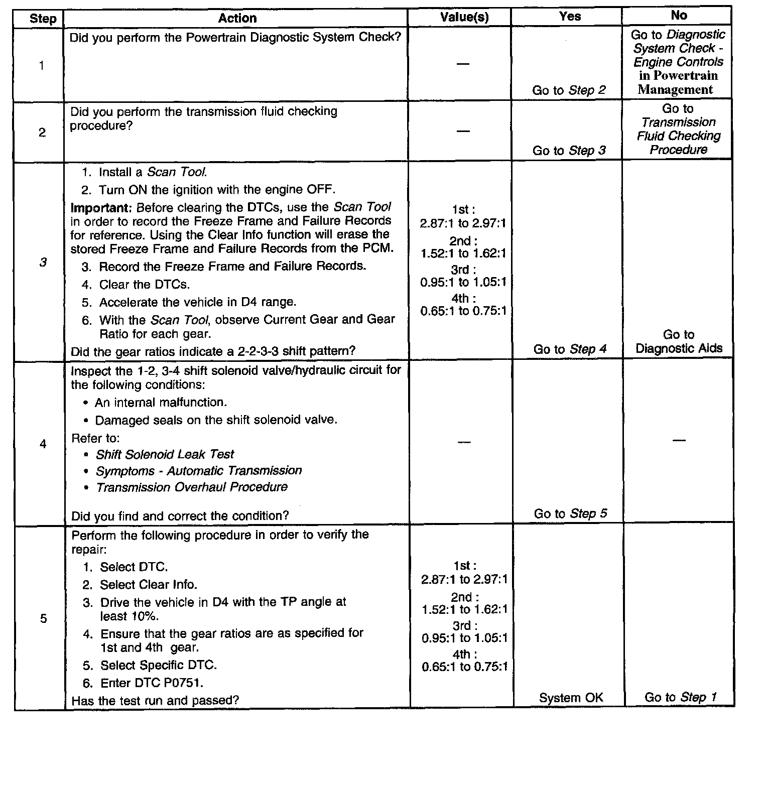 3. This step confirms that the PCM commanded all the shifts, but all the shifts did not occur.