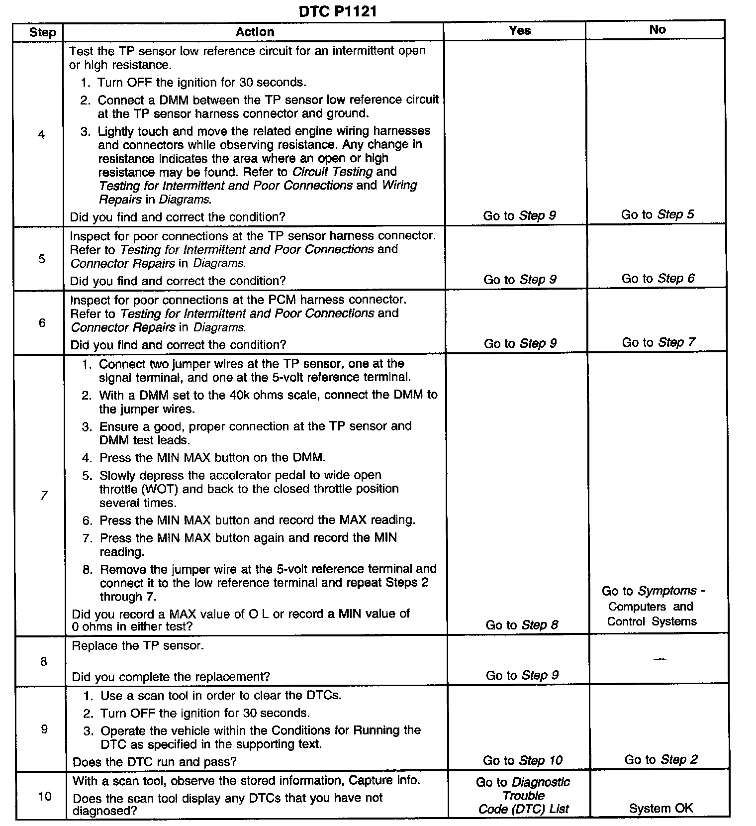 7. This test will determine an intermittent faulty TP sensor utilizing the DMMs MIN MAX, 100 millisecond capture mode.