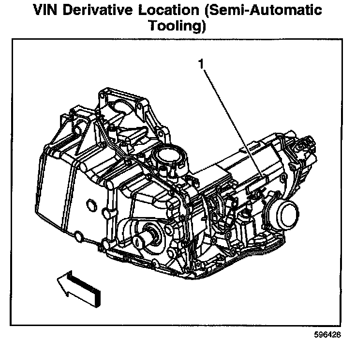 The location for the Semi-Automatic VIN Derivative Location (1) is on the transmission housing.