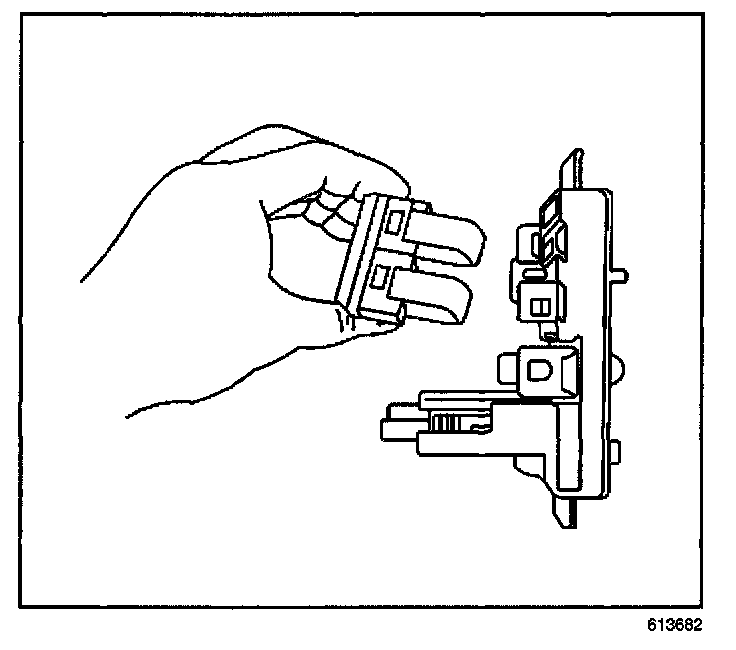 1. Align the three retaining tabs of the fuel door/trunk lid switch to the IP switch blank.