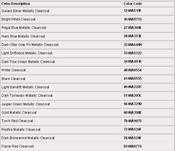 Paint Code Charts