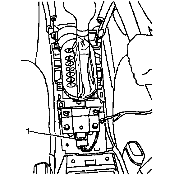 1. Install the yaw rate sensor/lateral accelerometer (1) into the vehicle and connect the yaw rate sensor/lateral accelerometer wiring harness connector to the sensor.