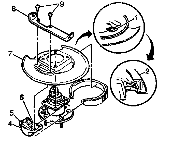 The rear hub, backing plate, park brake cable bracket, and park brake actuator will be removed as an assembly.