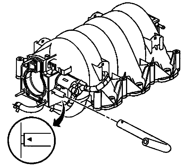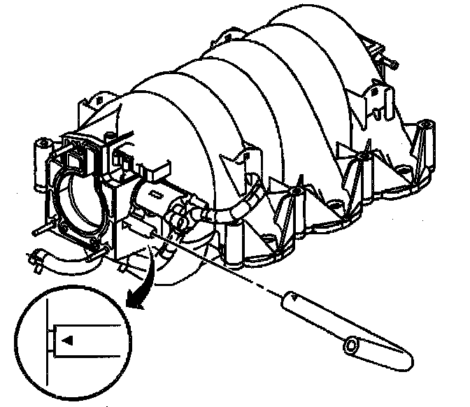 3. Connect the vacuum brake booster hose to the intake manifold until fully seated with the arrow on top.