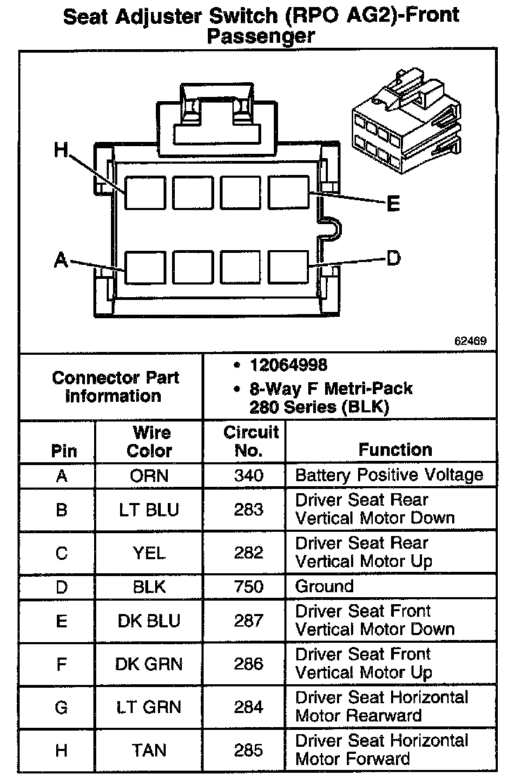 Seat Adjuster Switch (RPO AG2)-Front Passenger: