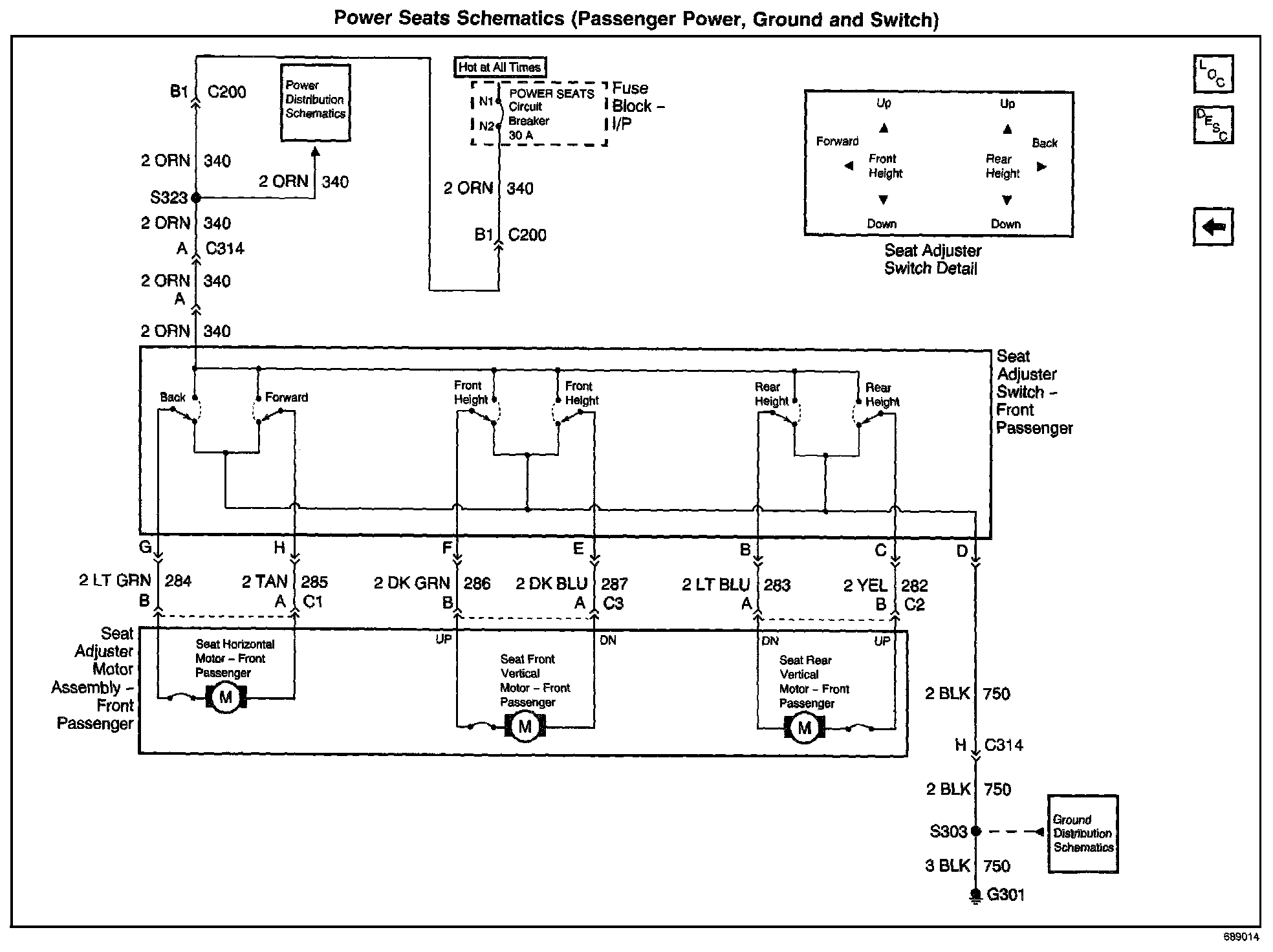 Power Seats Schematics: Passenger Power, Ground And Switch: