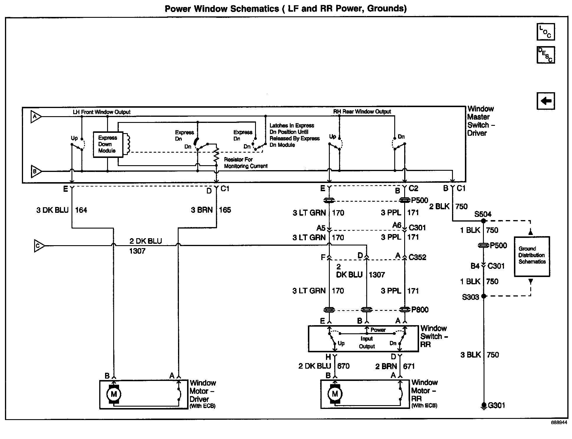 Power Windows - LF and RR Power, Grounds
