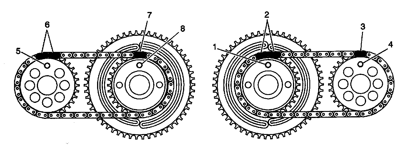Secondary Camshaft Timing Drive Chain Alignment Diagram (Secondary Timing Chains (Viewed From the Rear Of the Engine)