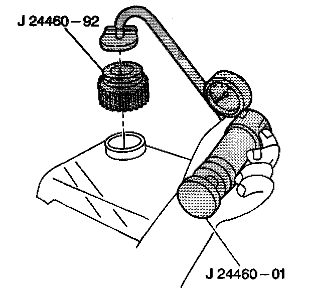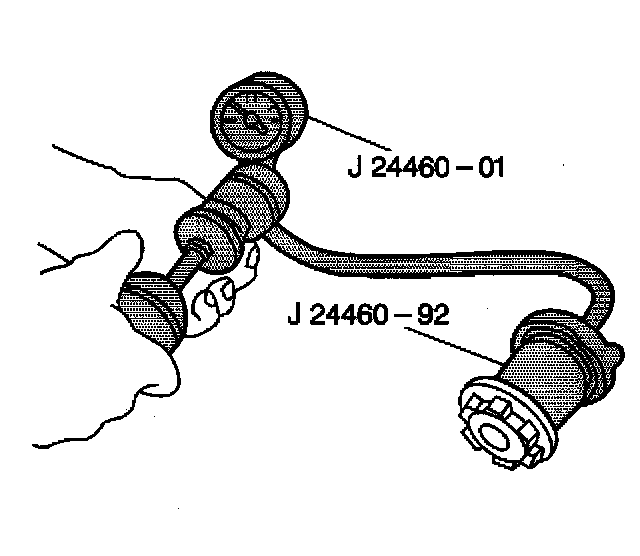 6. Check the surge tank cap with the J 24460-01 and the J 24460-92 in order to ensure the cap maintains the correct pressure.