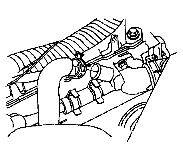 6. Remove the surge tank inlet hose clamp from the water inlet housing using the J 38185.
