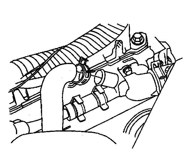 2. Remove the radiator hose clamp from the water inlet housing using the J 38185.
