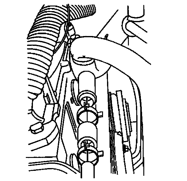 6. Install the heater hose damp to the water inlet housing using the J 38185.