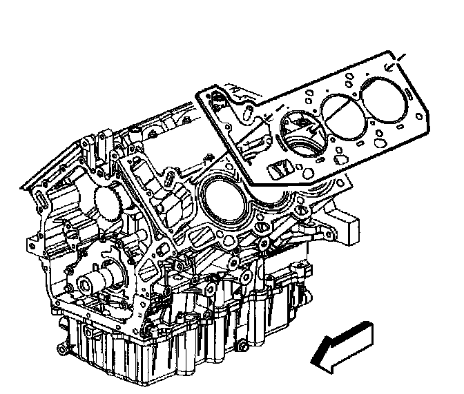 2. Install a new cylinder head gasket using the deck face locating pins for retention.