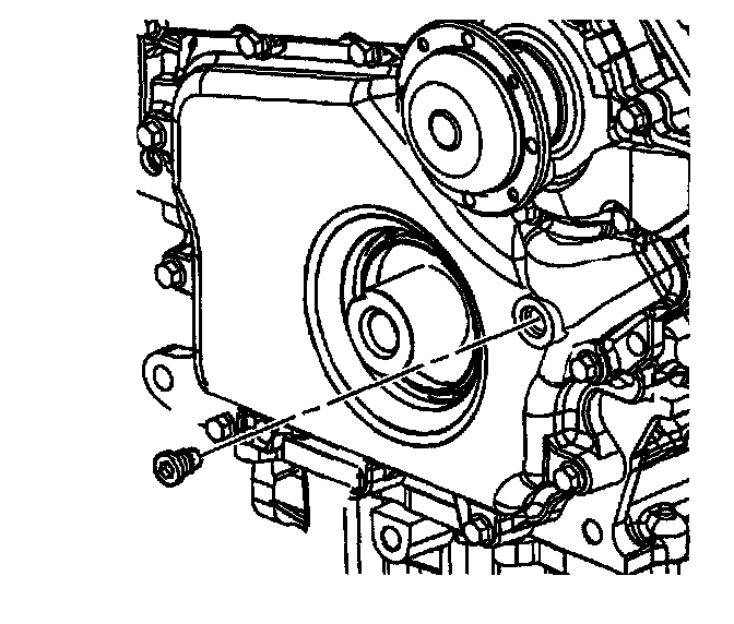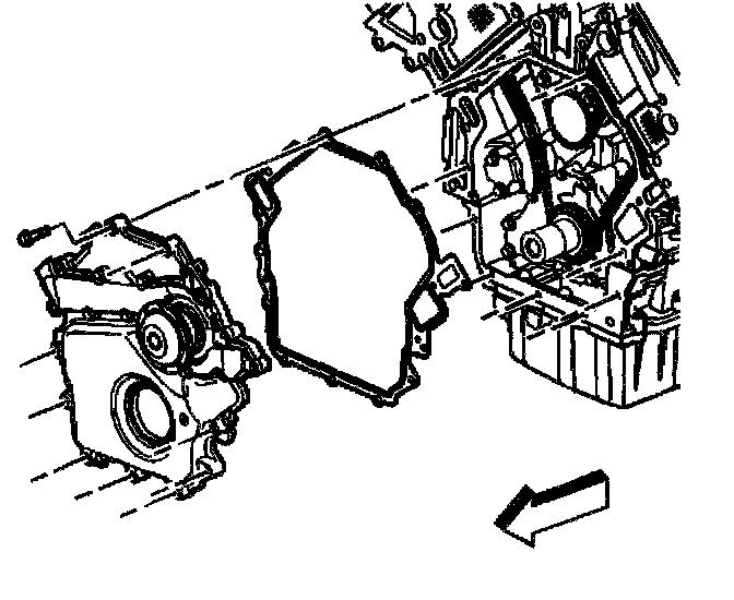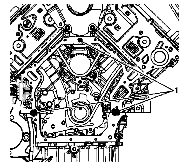 Engine Front Cover Installation1. Place a short bead of RTV sealant GM P/N 12345739 or equivalent, on the cylinder block in the locations shown (1).