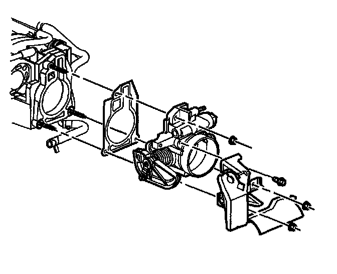 4. Remove the accelerator cable bracket, throttle body and throttle body gasket.