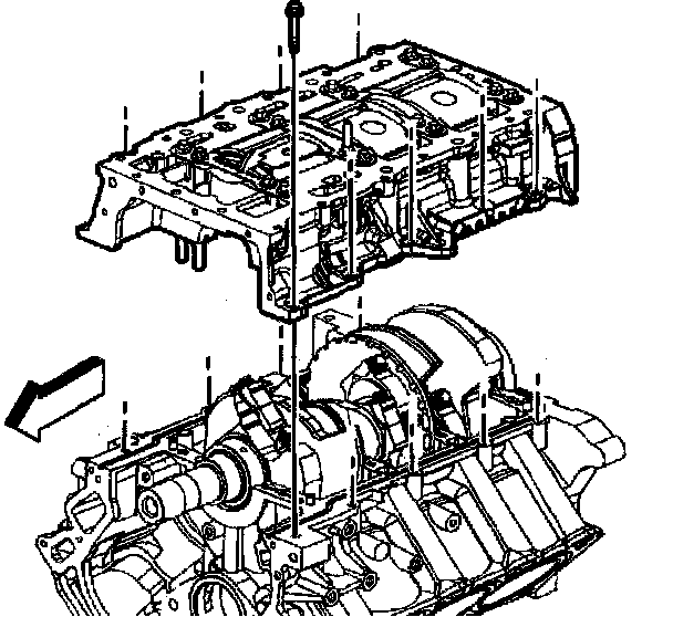 10. Inspect the upper-to-lower crankcase joint to make sure the lower crankcase is fully seated on the cylinder block.