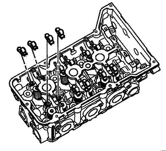 2. Place the camshaft followers in position on the valve tip and SHLA. The rounded head end of the follower goes on the SHLA while the flat end goes on the valve tip.