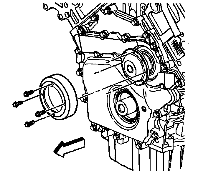 19. Remove the front cover and the gasket. Make sure you do not damage the sealing surface. Some of the gasket material may remain on the engine block.