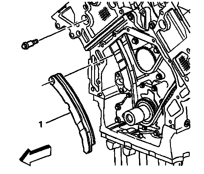12. Install the primary camshaft drive chain tensioner shoe (1).