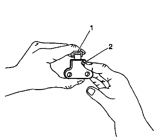 15. As the ratchet lever moves to its first click, hold the tensioner shoe inward. Insert a pin through the hole in the release lever.
