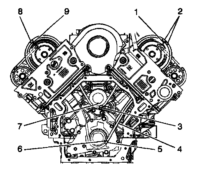 18. Ensure that all the timing marks (1 - 9) are properly aligned. Make adjustments as necessary.