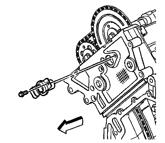 19. Remove the pin holding the primary camshaft drive chain tensioner to tighten any slack in the timing chain.