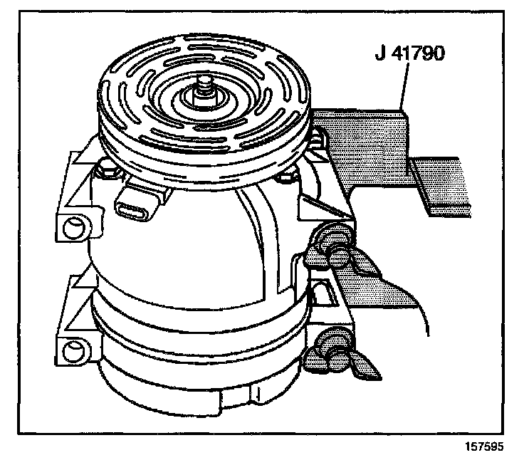 2. Clamp the J 41790 in a vise and attach the A/C compressor to the J 41790.