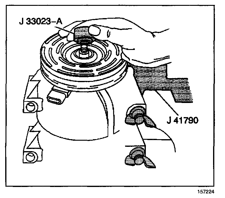 4. Install the J 33023-A onto the front head of the A/C compressor.