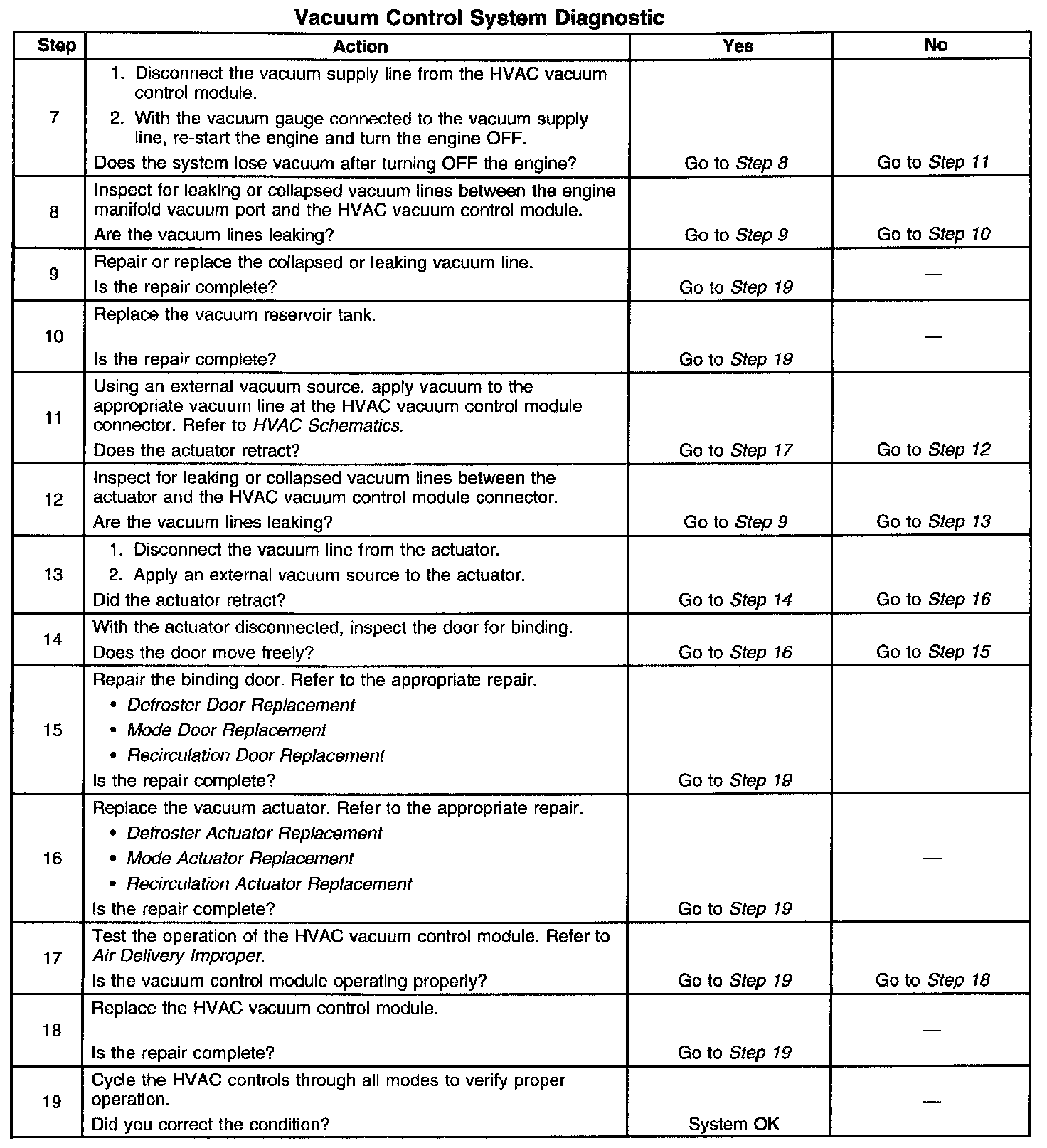 Vacuum Control System Diagnostic - HVAC System - Automatic