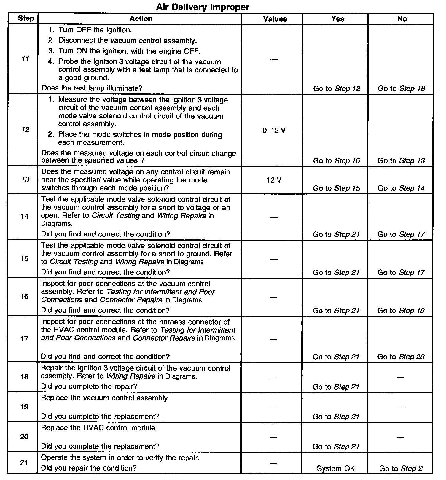 11. Tests for voltage at the vacuum control assembly. The HVAC fuse supplies power to the vacuum control assembly.