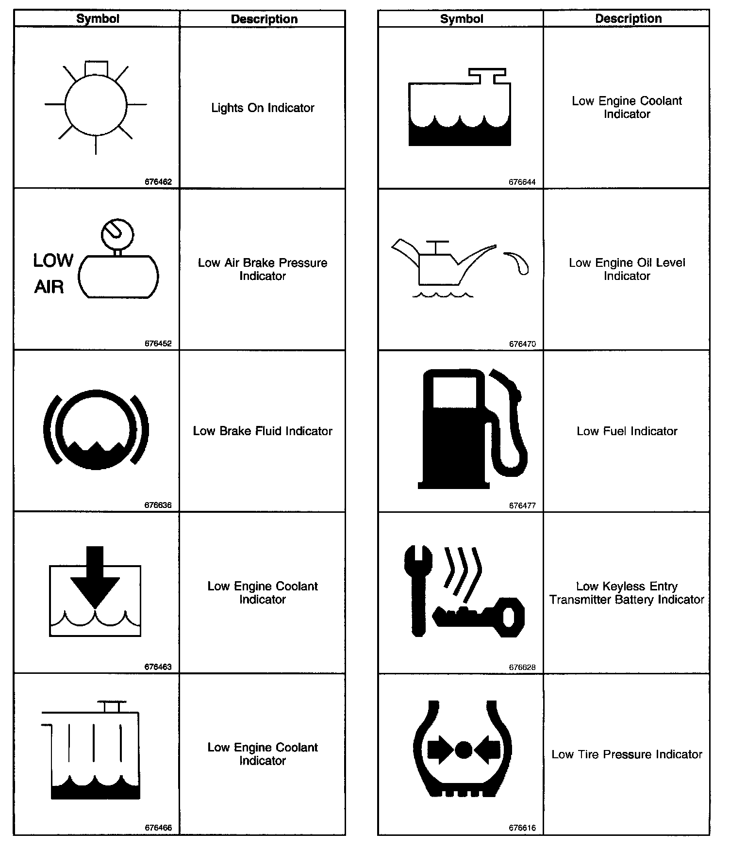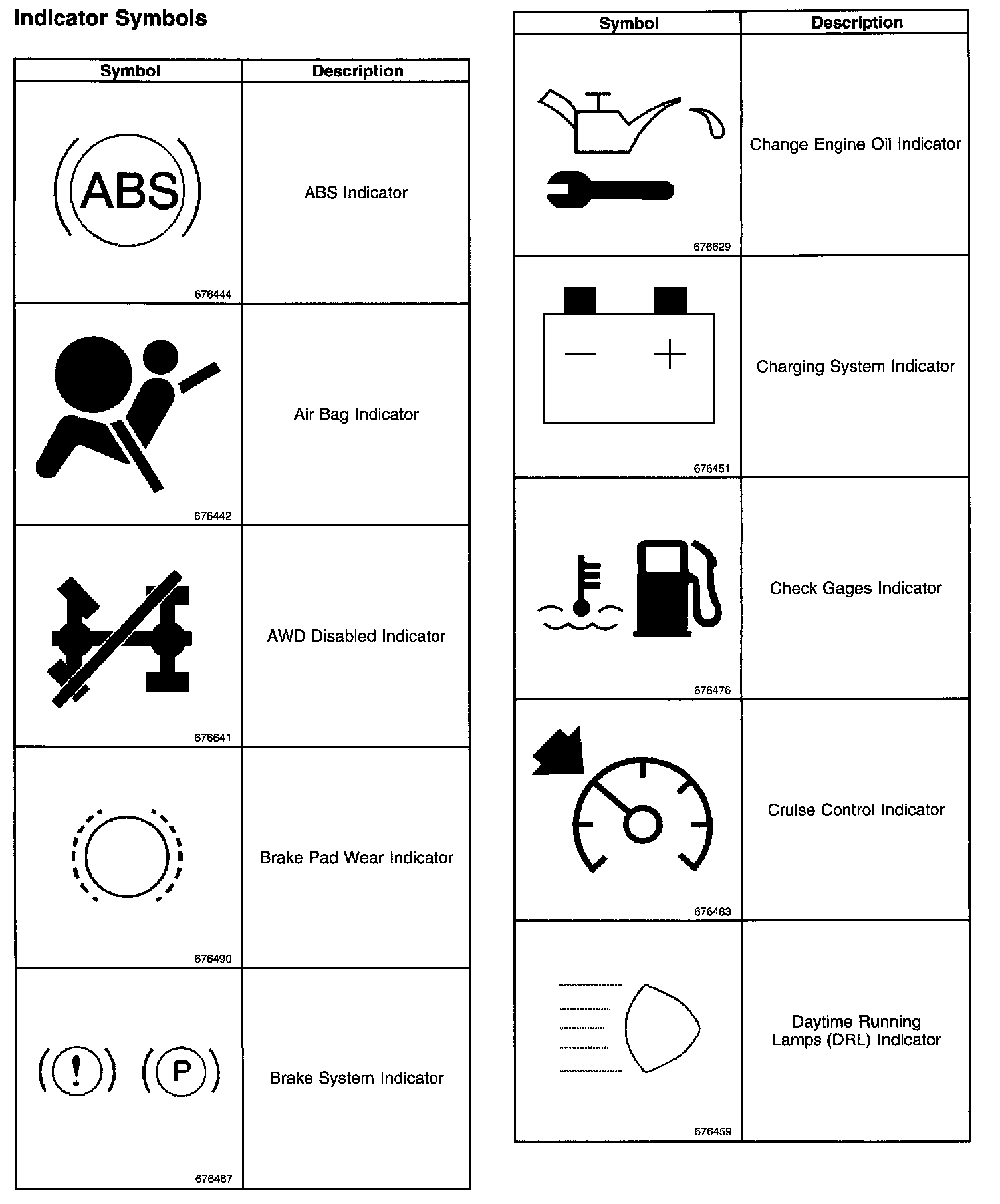 Instrument Panel, Gauges and Warning Indicators: Application and ID