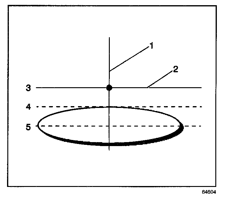 3. Adjust the fog lamp up or down until the top edge of the high intensity zone on the screen is 102 mm (4 in) below the horizontal centerline (2), within the range of 0 mm (0 in) (3) to 203 mm (8 in) (5), below the horizontal centerline, on the target screen.