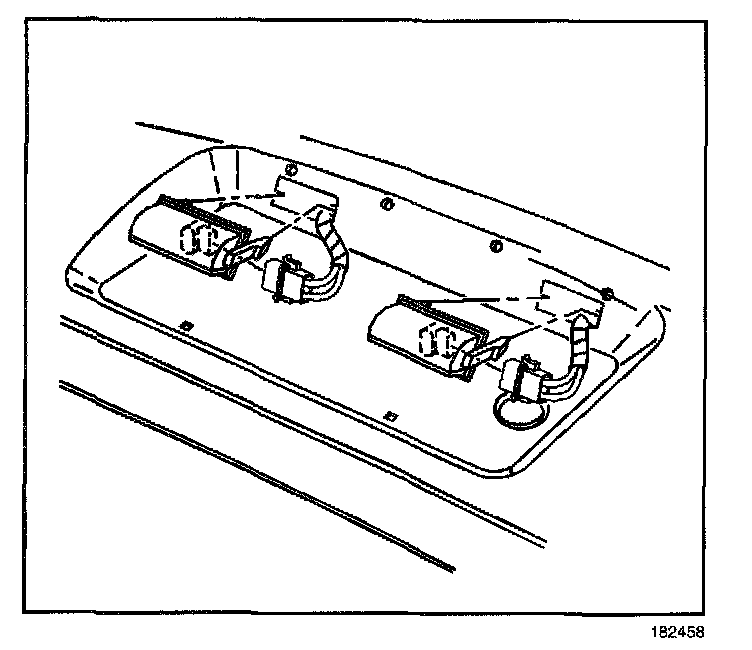 4. Reach through the access opening on the underside of the rear compartment lid and depress the license lamp retainers to release.