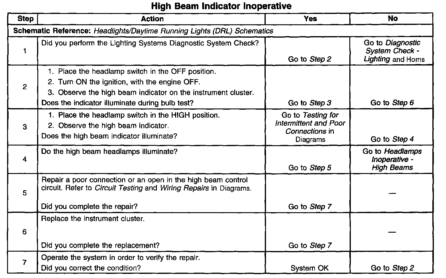 High Beam Indicator Inoperative