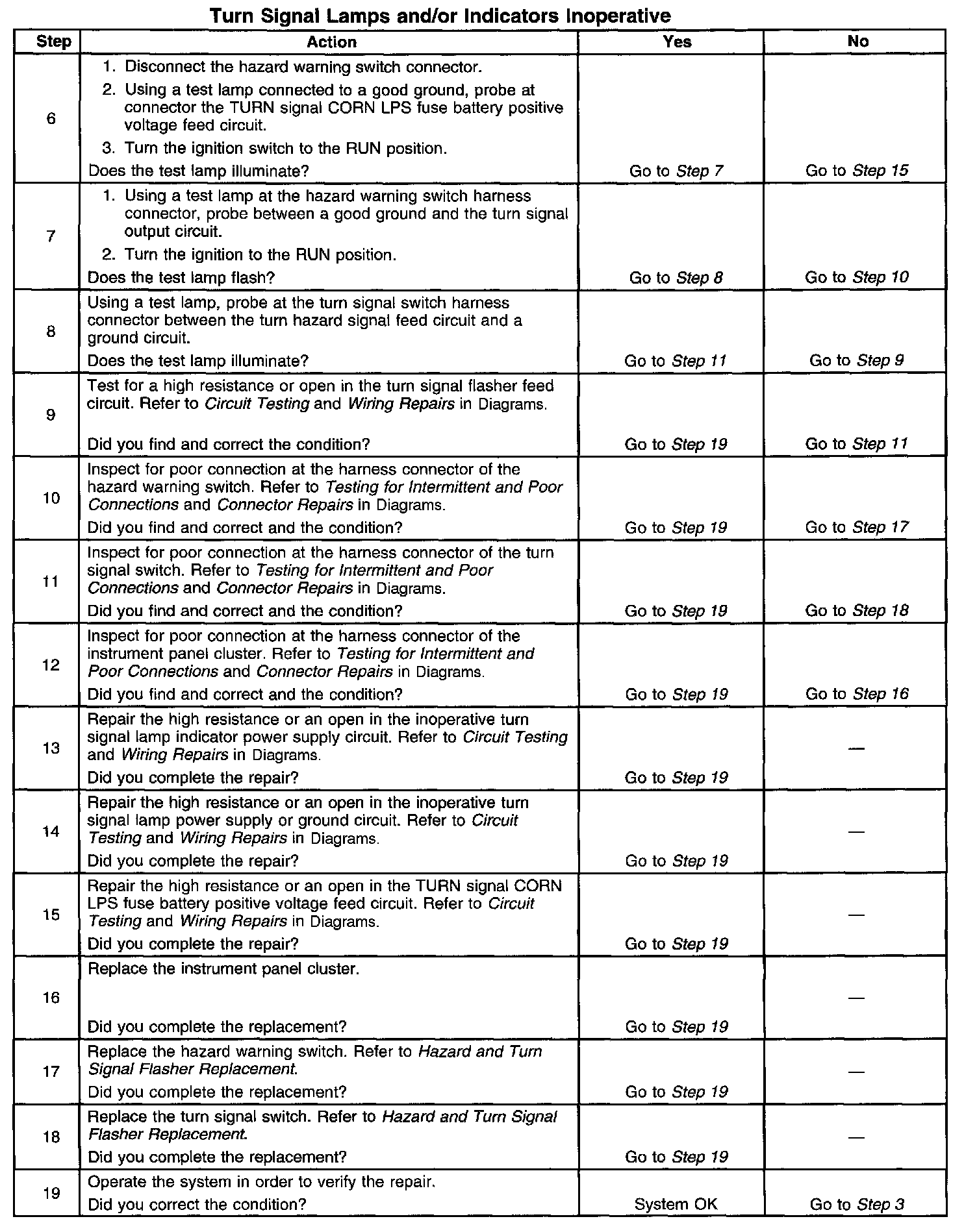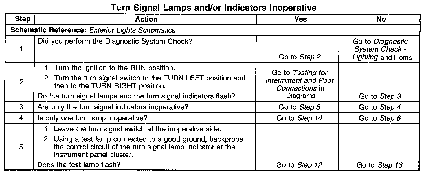 Turn Signal Lamps and/or Indicators Inoperative