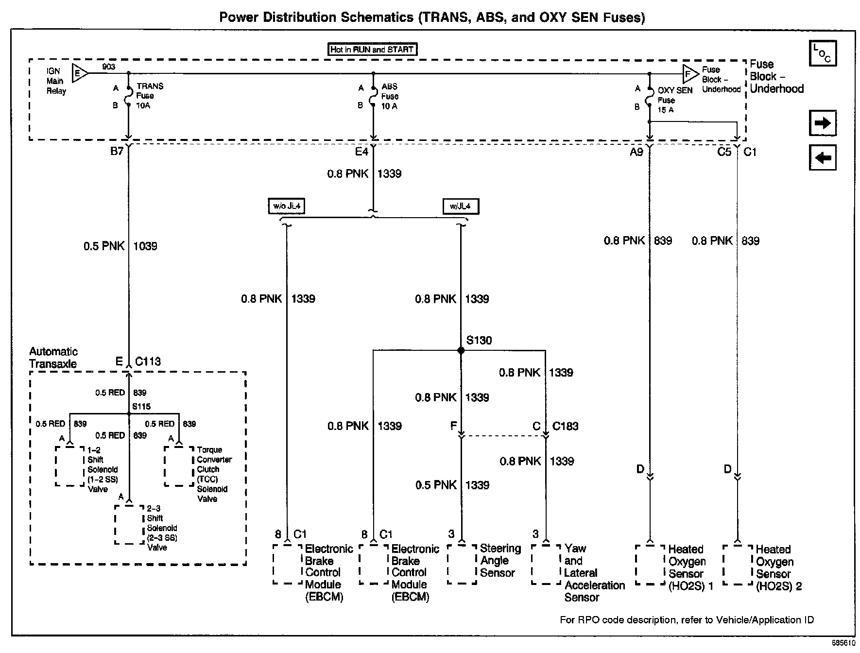 Power Distribution Schematics: TRANS, ABS, And OXY SEN Fuses: