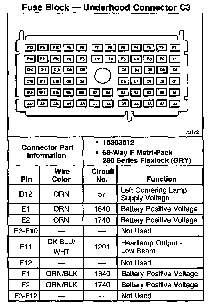 Fuse Block - Underhood Connector C3 (Part 2 Of 2):