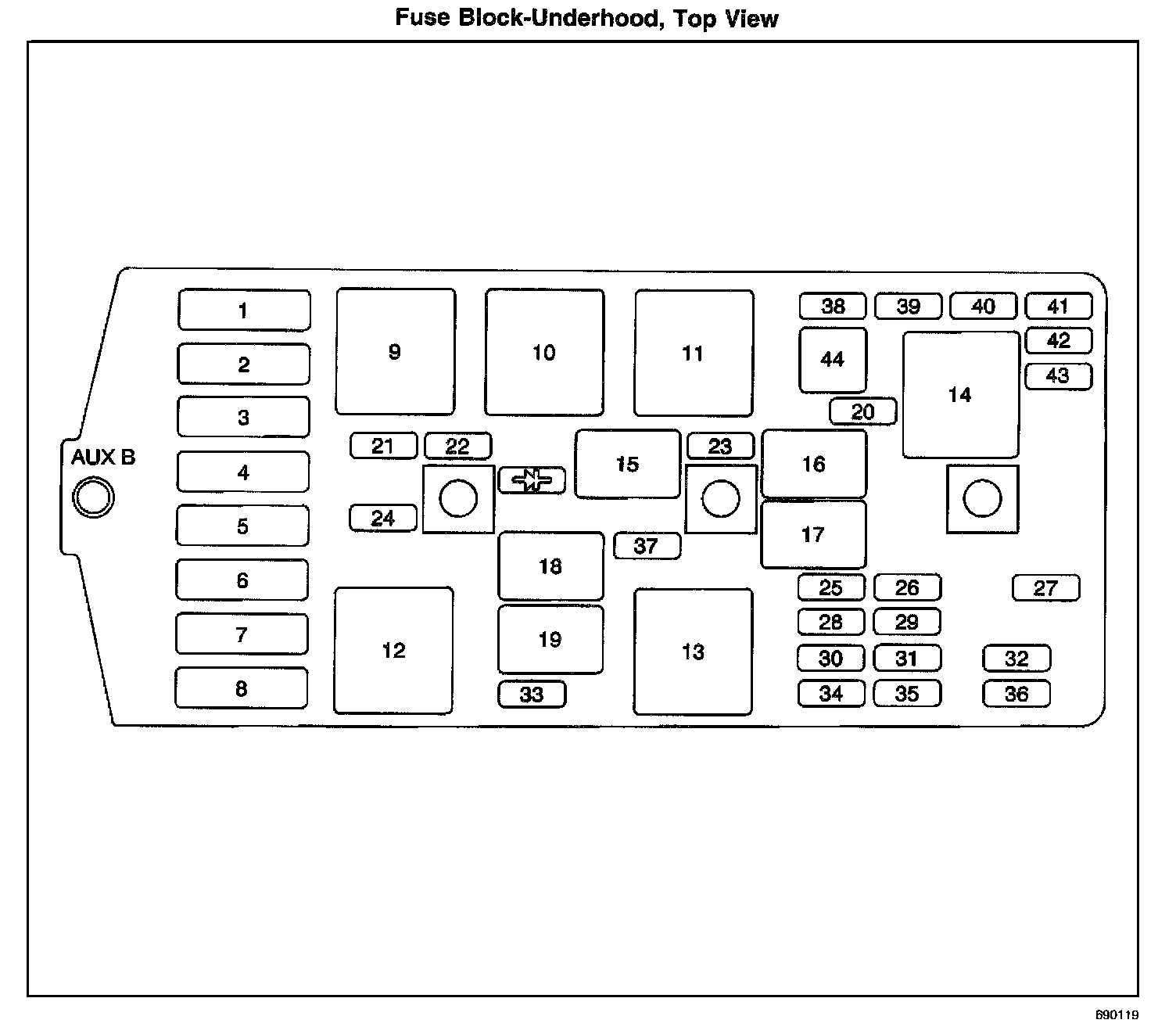 Fuse Block-Underhood, Top View: