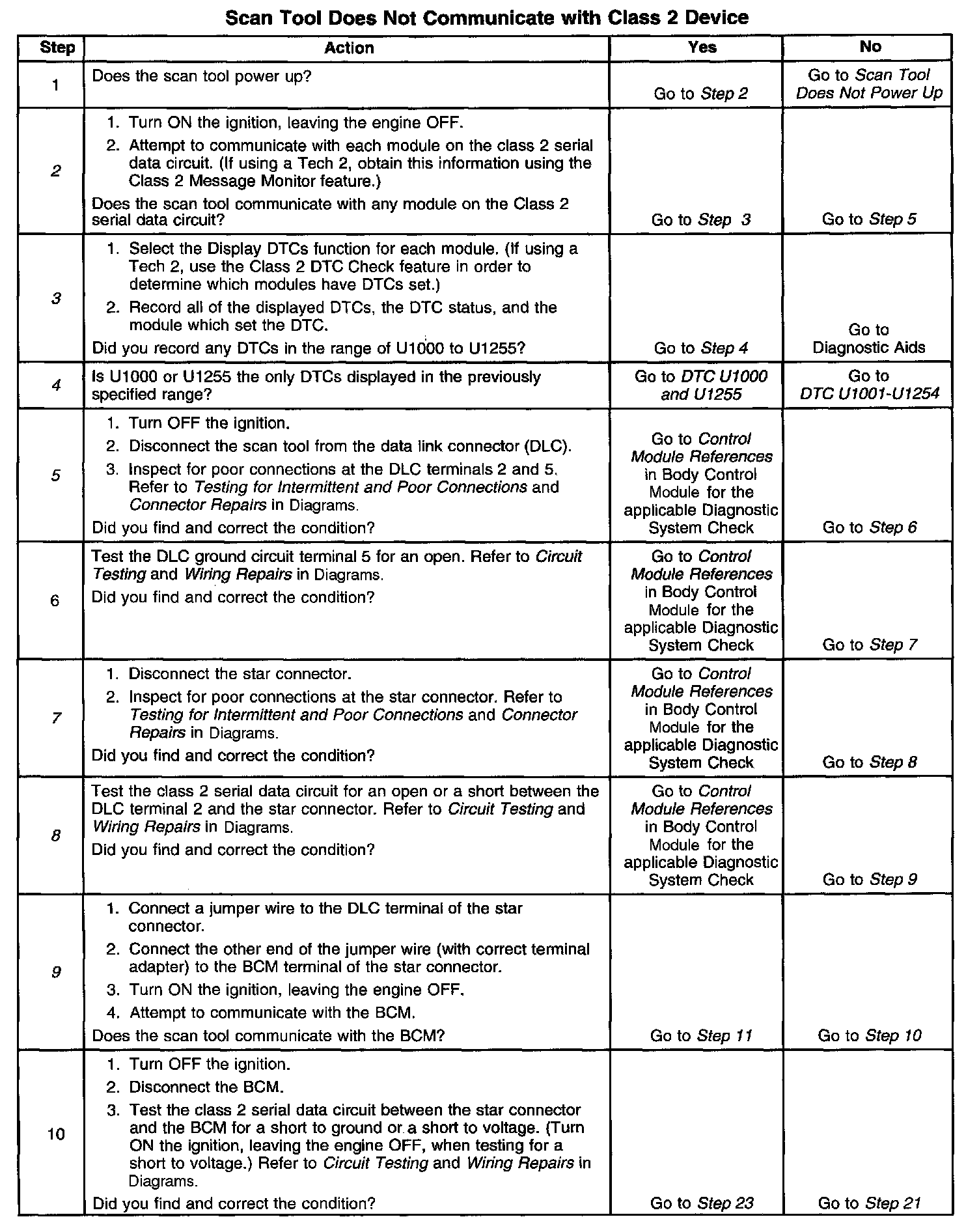 8. An open in the class 2 serial data circuit between the DLC and star connector will prevent the scan tool from communicating with any module. This condition will not set a DTC.