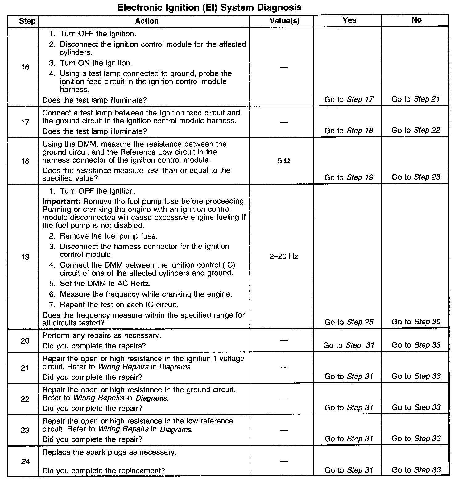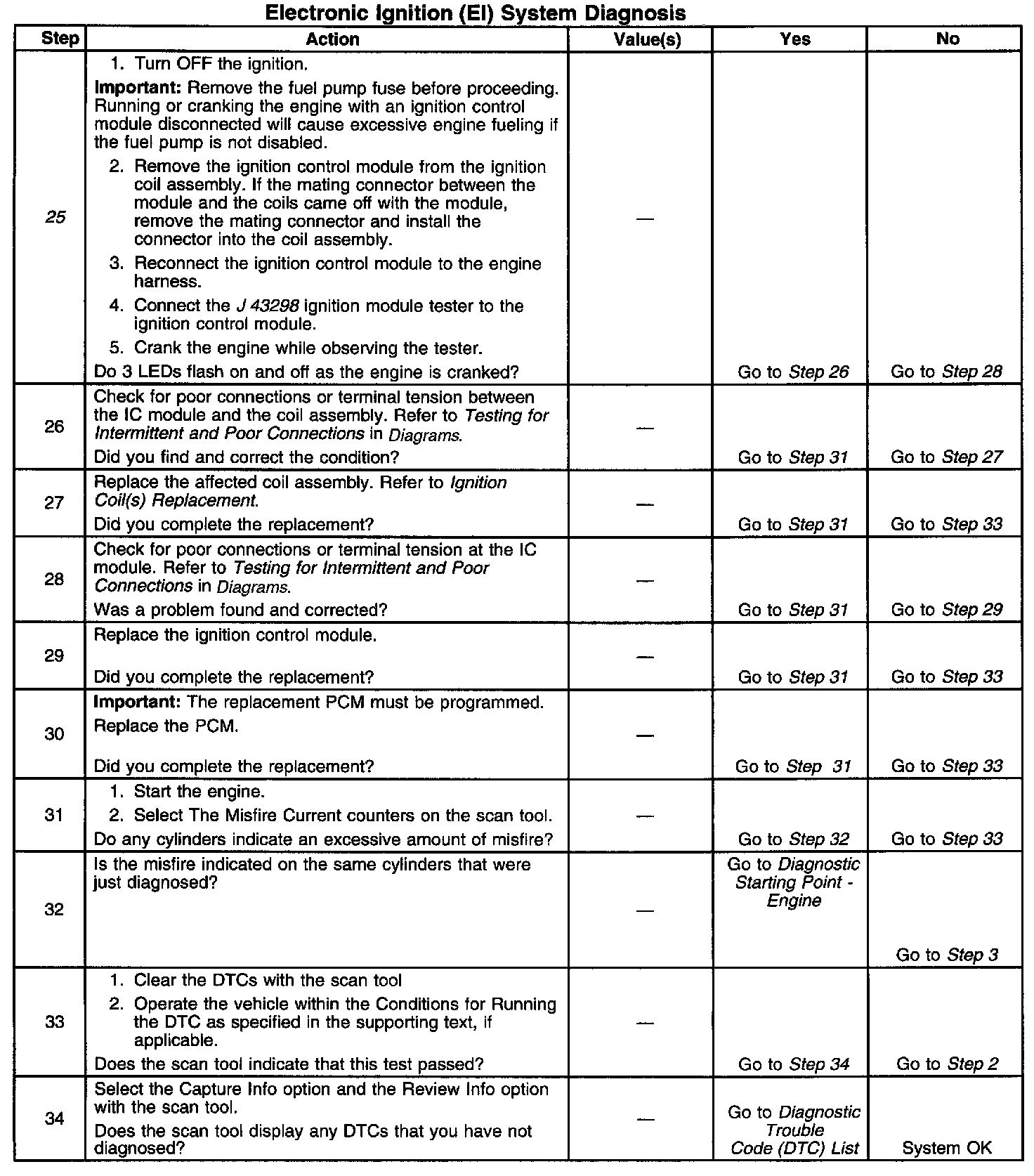 Electronic Ignition (EI) System Diagnosis