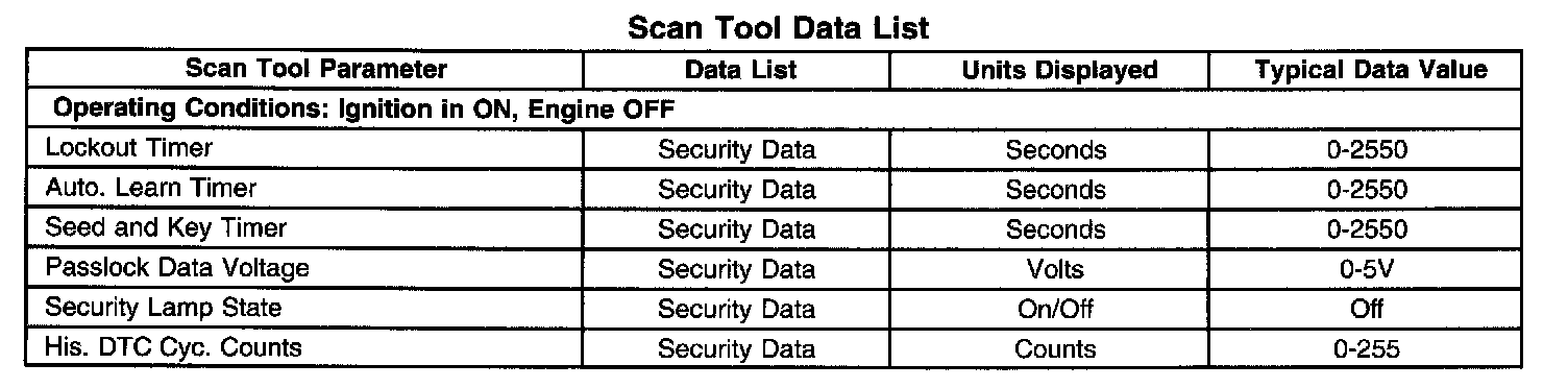 Scan Tool Data List - Antitheft System