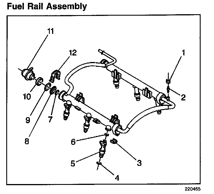 The fuel rail assembly attaches to the engine intake manifold. The fuel rail assembly performs the following functions: