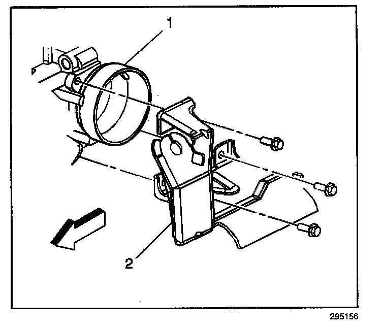 4. Remove the nuts and the bolts from the accelerator controls cable bracket (2).