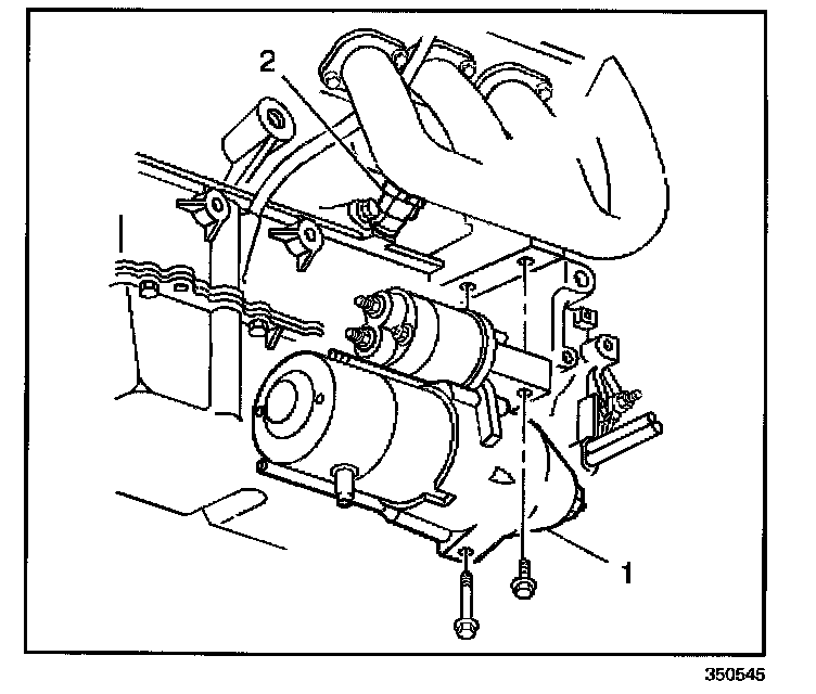 3. Loosen or remove the starter motor (1) as necessary.